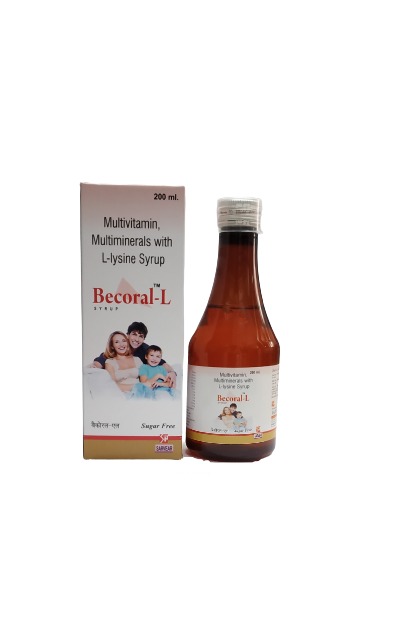 | BECORAL-L | Each 10 ml contains:L-LYSINE HCL : 30 MG Potassium Iodide: 50mcg Copper Sulphate:100mcg Zinc Sulphate: 22.5mg Vitamin A Palmitate :2000I.U Vitamin D3 200 I.U Vitamin E : Acetate 5 I.U Vitamin B 1 : 1MG Vitamin B 2 : 1MG Vitamin B 6 : 1MG Cyanocobalamin : 1mcg D-Panthenol 2.5m Niacinamide IP 15mg | 200ml |  |